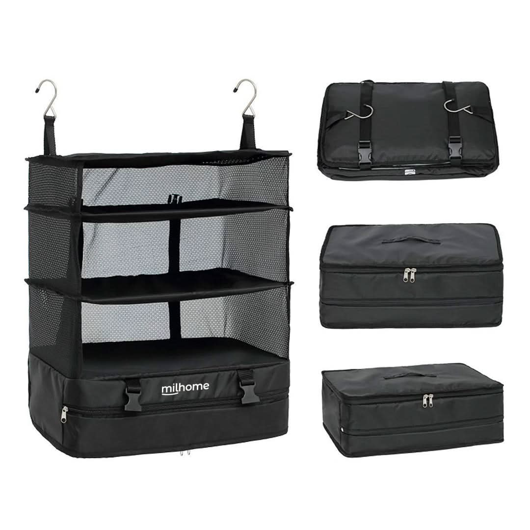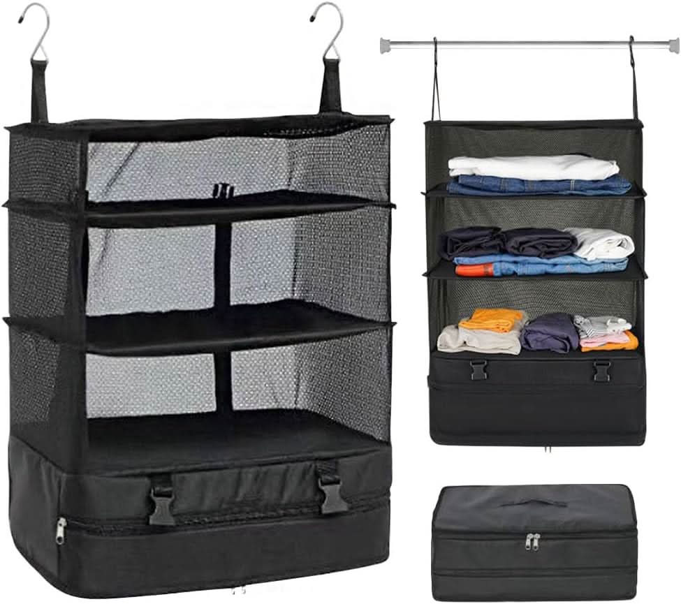 - Varios compartimentos: Equipado con múltiples compartimentos abiertos y cerrados de diferentes tamaños, ideal para almacenar ropa, zapatos, accesorios, ropa interior y más.
