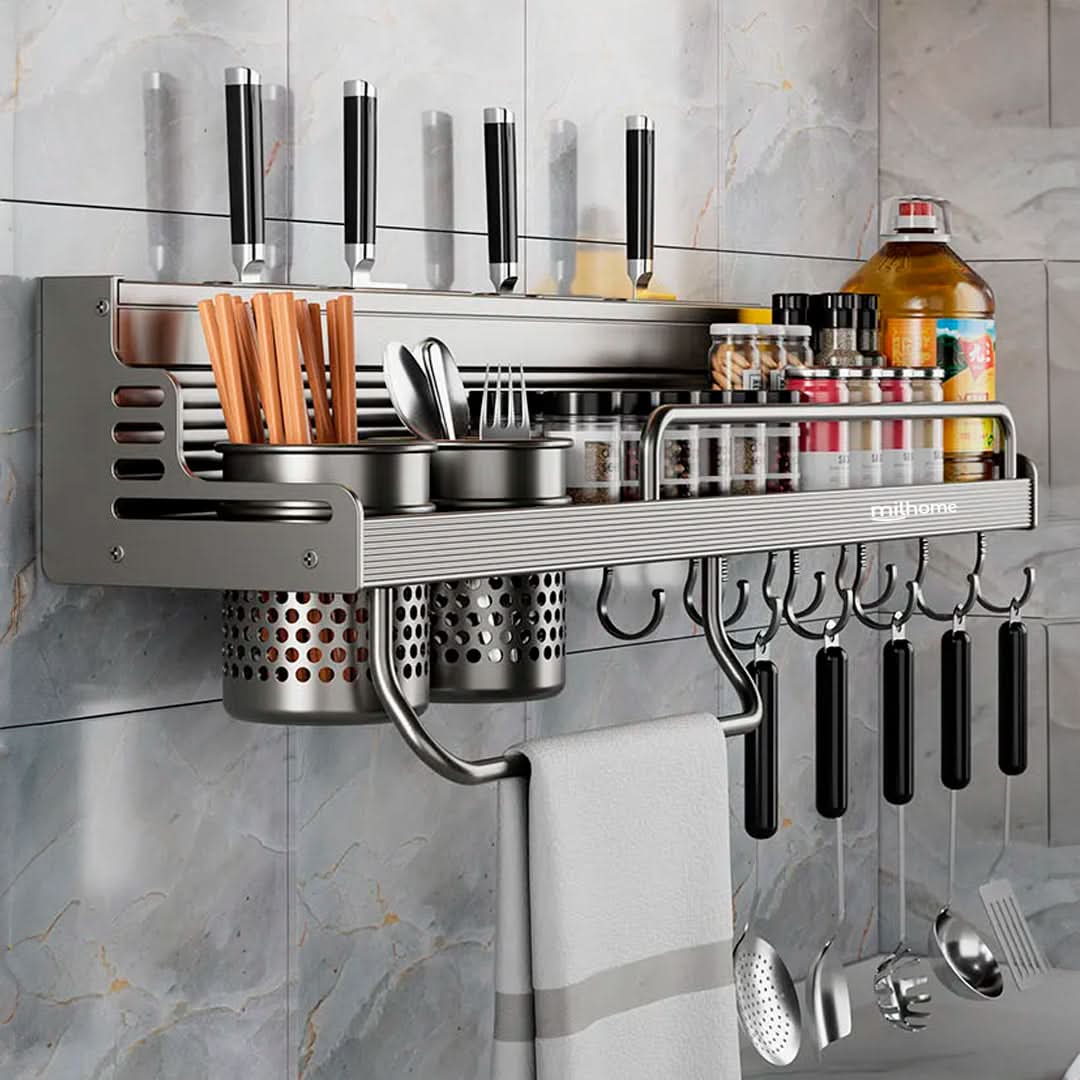 - Maximice el Espacio de su Mostrador: aprovecha el espacio vertical. El nuevo estante Multifuncional tiene mucho espacio para recipientes y herramientas de cocina.