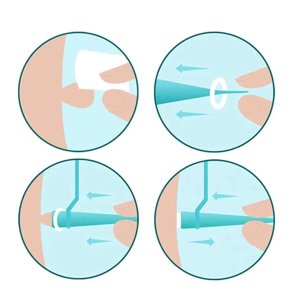 - Limpie el apéndice cutáneo y el área circundante con uno de los hisopos de limpieza proporcionados.