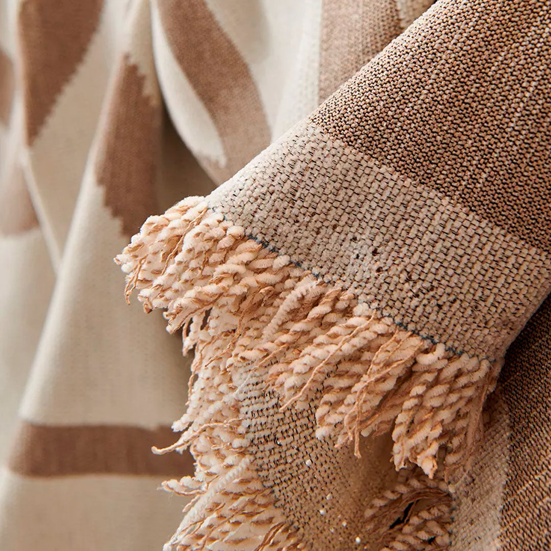 ☑️ Lavado suave recomendado – lavar a mano los flecos