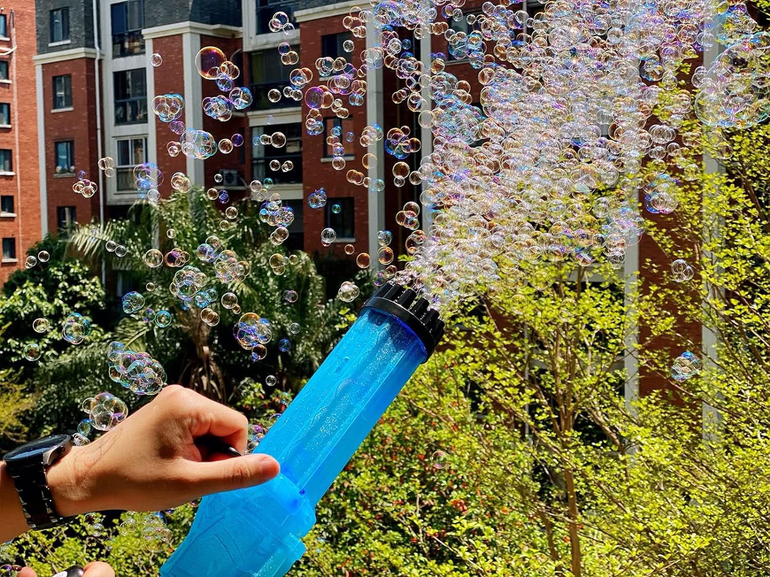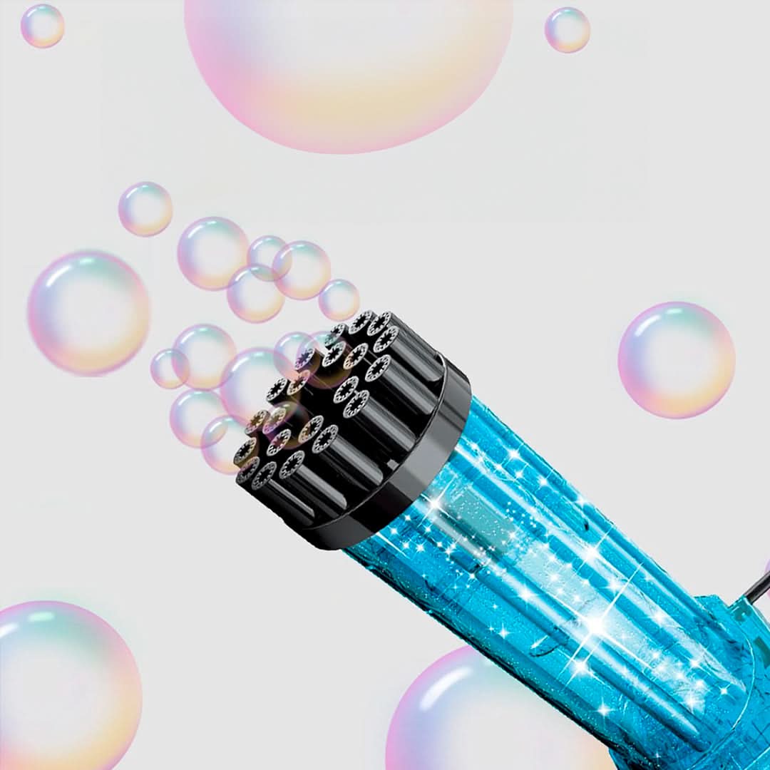 Esta pistola de burbujas no solo crea burbujas encantadoras, sino que también cuenta con 21 disparadores para una experiencia lúdica emocionante.