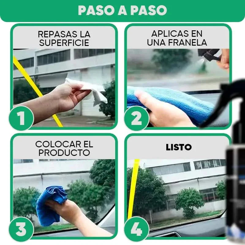 - 2 - Agite el producto y rocíelo sobre el parabrisas o el vidrio.
