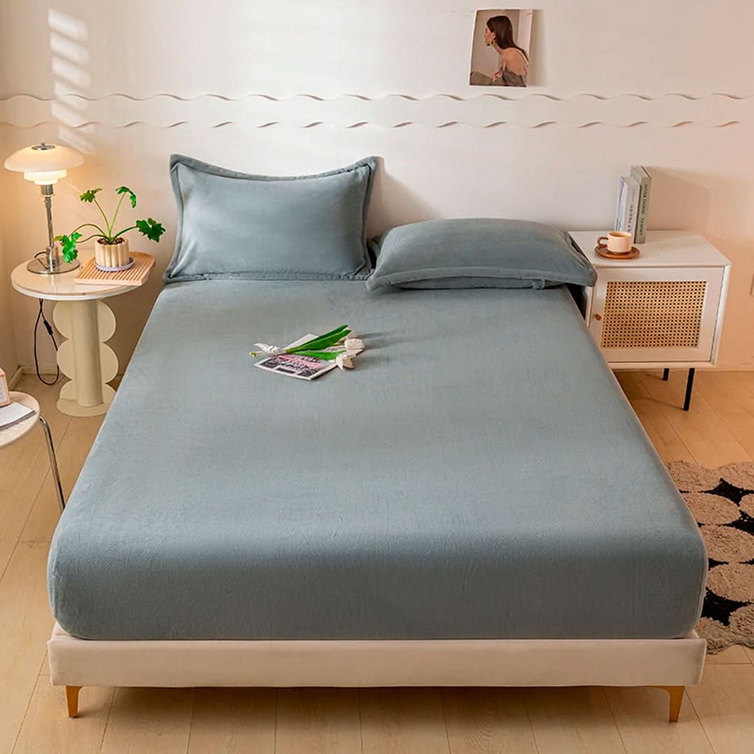 Sabana Bajera de Colchón Termica Terciopelo Con Fundas